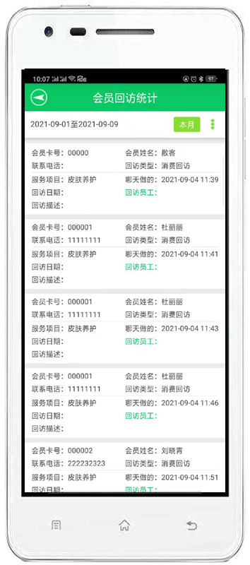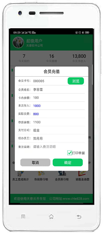 | 会员管理:会员卡售出可提成,每张会员卡即可储值亦可绑定套餐,辅之以会员预约、意向会员、护理计划及会员生日、会员照片等,功能强大; | |||