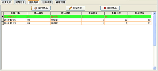 消费开单:对会员消费情况进行录入,自动完成累计积分,消费打折。也可以增加会员消费商品的详细信息。