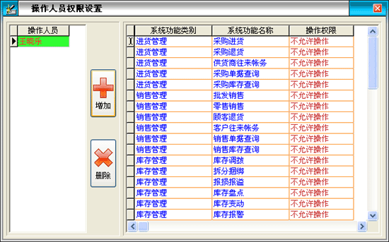 ·进入“操作人员权限设置”窗口中,如需增加操作人员,请点击“增加”按钮,录入操作人员名称和操作密码,注意操作人员名称不能相同。