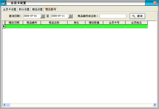 | 在“会员卡设置”中可以分为四大模块:会员卡设置、积分设置、赠品设置、赠品查询。
