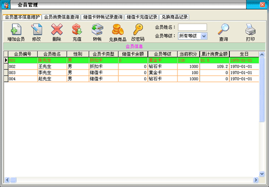 此模块用于增加会员、修改会员信息、删除会员、会员信息的查询和打印等功能。