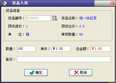 模块功能:对货品进行入库登记。