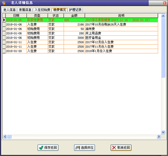 g、缴费情况:在此可浏览老人的缴费记录。