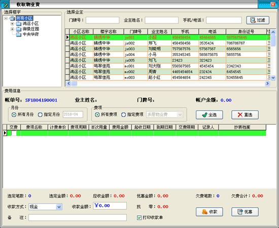 | 第七步:进入“收费管理-->收取物业费”,收取相应业主的物业费。 | |||